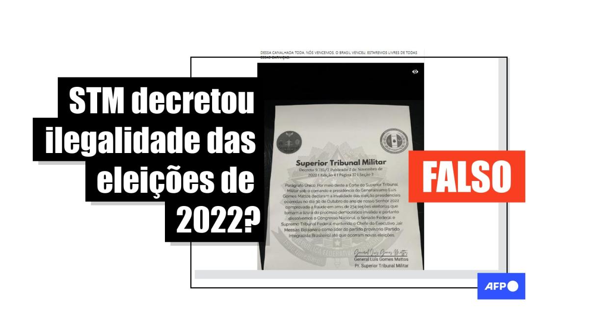 Procurada pela AFP, a assessoria de comunicação do STM afirmou que o documento que circula nas redes “é falso” e que o tribunal não se manifestou sobre o resultado eleitoral.