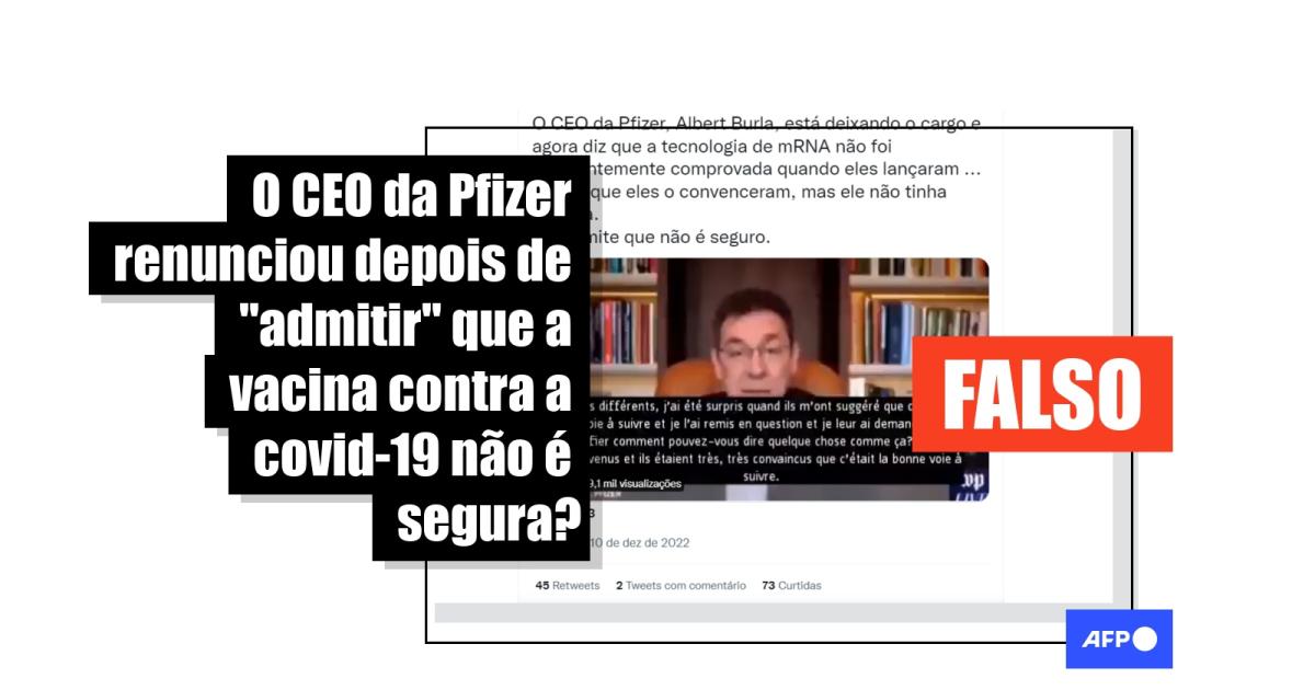 “O CEO da Pfizer, Albert Burla, está deixando o cargo e agora diz que a tecnologia de mRNA não foi suficientemente comprovada quando eles lançaram… Ele diz que eles o convenceram, mas ele não tinha certeza. Ele admite que não é seguro”, diz a legenda de uma das publicações compartilhadas no Twitter e no Facebook.