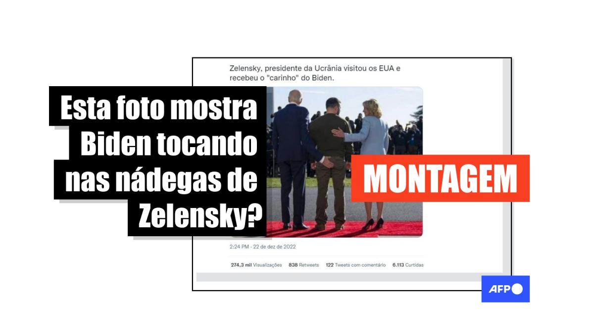 Foto em que Biden supostamente encosta nas nádegas de Zelensky foi adulterada