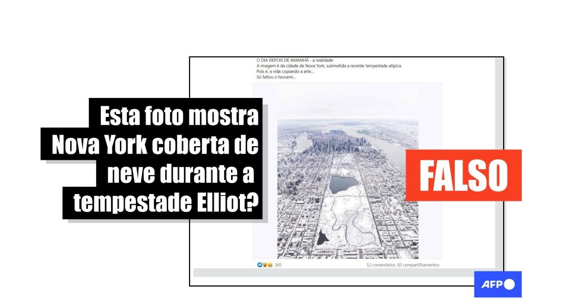 Uma busca reversa no Google e na ferramenta TinEye encontrou o registro mais antigo da fotografia de Manhattan coberta de neve em 2021.