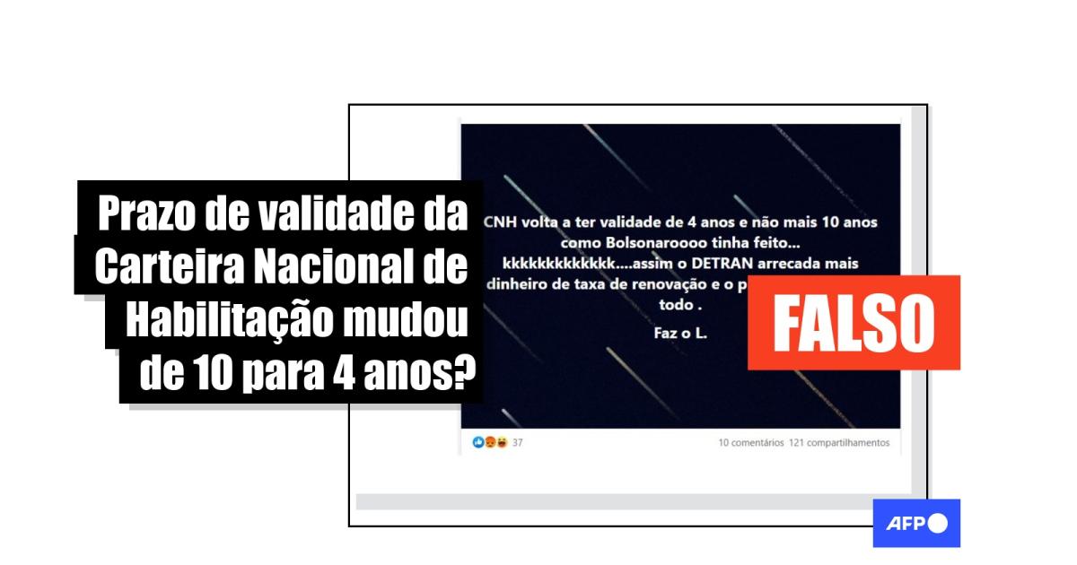 “CNH volta a ter validade de 4 anos e não mais 10 anos como Bolsonaroooo tinha feito... kkkkkkkkkkkkk....assim o DETRAN arrecada mais dinheiro de taxa de renovação e o processo como um todo”, diz uma publicação no Twitter com mais de 130 compartilhamentos.