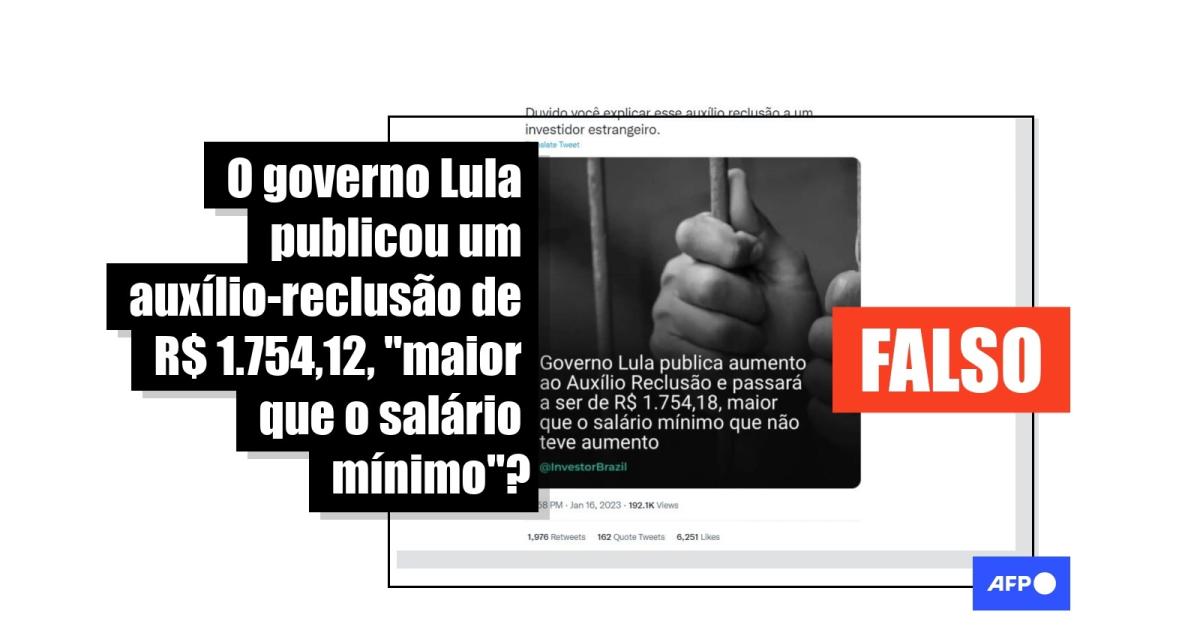 O valor de R$ 1.754,18, citado nas publicações, se refere, na verdade, ao teto da remuneração que um segurado do INSS precisa receber no momento em que foi preso para que seus dependentes se qualifiquem para obter o auxílio. Esse limite consta em uma portaria sobre reajustes dos benefícios pagos pelo INSS publicada em 10 de janeiro de 2023, já durante o governo Lula.