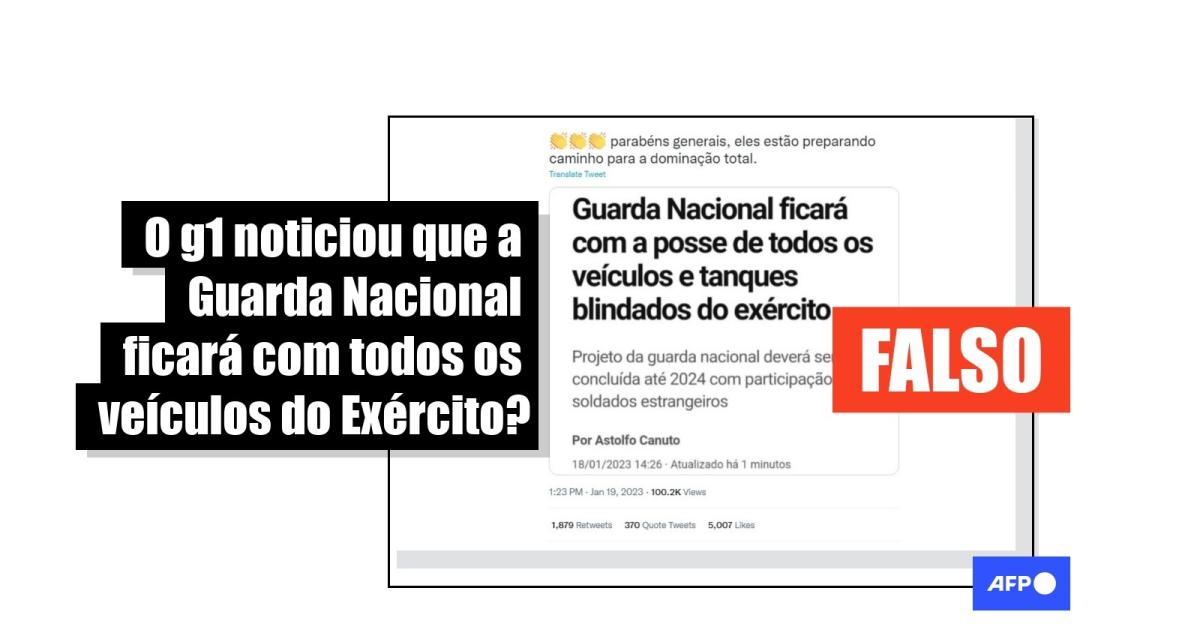 O portal g1 não publicou que Guarda Nacional ficará com “todos os veículos” do Exército