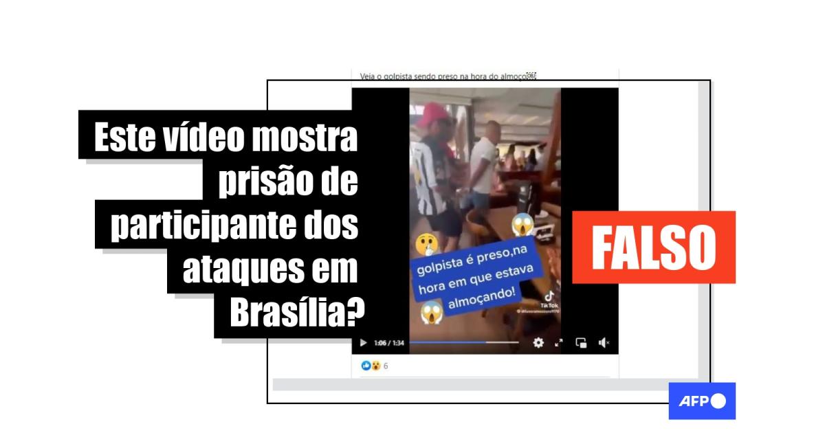 “Veja o golpista sendo preso na hora do almoço”, diz uma das publicações compartilhadas no Facebook e no TikTok.