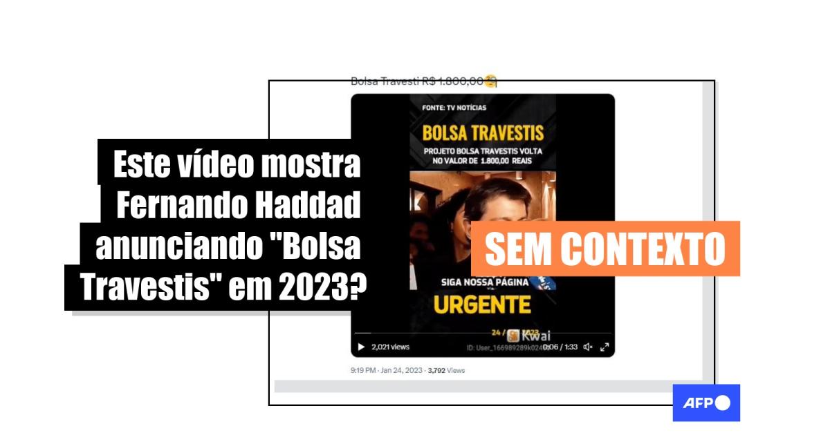 “BOLSA TRAVESTIS Projeto Bolsa Travestis volta no valor de 1.800,00 reais”, diz o texto sobreposto ao vídeo compartilhado no Twitter, no Facebook e no Kwai.