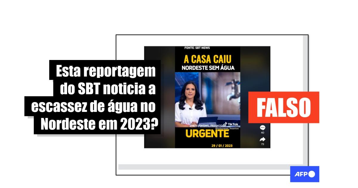 Na sequência, a jornalista que apresenta o programa SBT News diz: “Quase dois milhões de moradores correm o risco de sofrer desabastecimento de água no Nordeste. Mais de 600 cidades tiveram os recursos cortados". Em seguida, é exibida uma reportagem sobre o impacto da falta d'água nas plantações de agricultores e na vida de moradores de Campina Grande, na Paraíba.