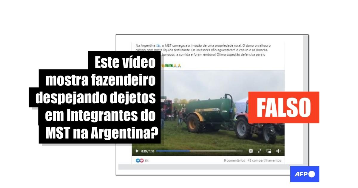 “Na Argentina, o MST começava a invasão de uma propriedade rural. O dono orvalhou o campo com bosta liquida fertilizante. Os invasores não aguentaram o cheiro e as moscas. Abandonaram os barracos, a comida e foram embora! Ótima sugestão defensiva para o Agronegócio”, diz uma das publicações compartilhadas no Facebook, no Twitter e no TikTok.
