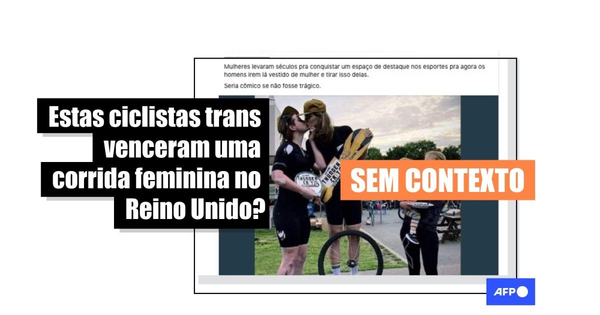 "Na Inglaterra dois atletas trans comemoram com um beijo o primeiro e o segundo lugar em uma competição feminina de ciclismo (Thundercrit). Em terceiro lugar ficou uma mulher que levou sua filha para o pódio", diz uma das publicações compartilhadas no Facebook, no Instagram, no Twitter e no TikTok.