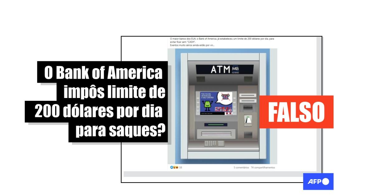 A AFP comprovou em 14 de março de 2023 que não existe um limite de saque de até US$ 200 em caixas eletrônicos.