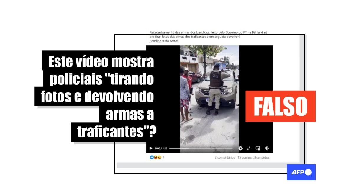 “Recadastramento das armas dos bandidos, feito pelo Governo do PT na Bahia, é só pra tirar fotos das armas dos traficantes e em seguida devolver!”, diz a legenda de uma das publicações compartilhadas no Facebook. O conteúdo circula também no Twitter, no TikTok e no Kwai.