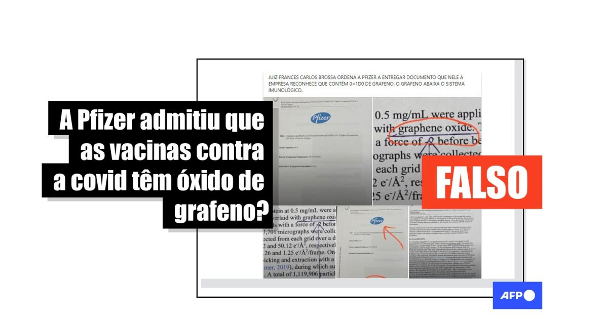 Também é falso que a Pfizer tenha "finalmente" reconhecido que seus imunizantes contra a covid contêm óxido de grafeno.