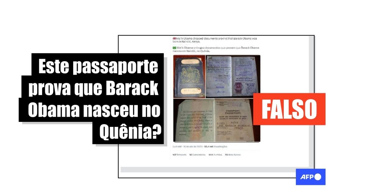 “Malik Obama entregou documentos que provam que Barack Obama nasceu em Nairóbi, no Quênia”, diz a legenda que acompanha imagens de passaportes, compartilhadas no Twitter, no Facebook e no Telegram.