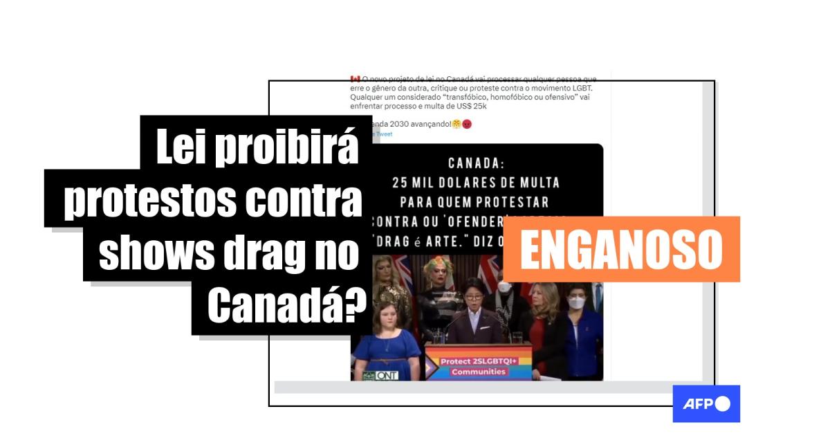 “O novo projeto de lei no Canadá vai processar qualquer pessoa que erre o gênero da outra, critique ou proteste contra o movimento LGBT. Qualquer um considerado ‘transfóbico, homofóbico ou ofensivo’ vai enfrentar processo e multa de US$ 25k”, diz uma das publicações compartilhadas no Twitter, no Facebook e no Kwai.