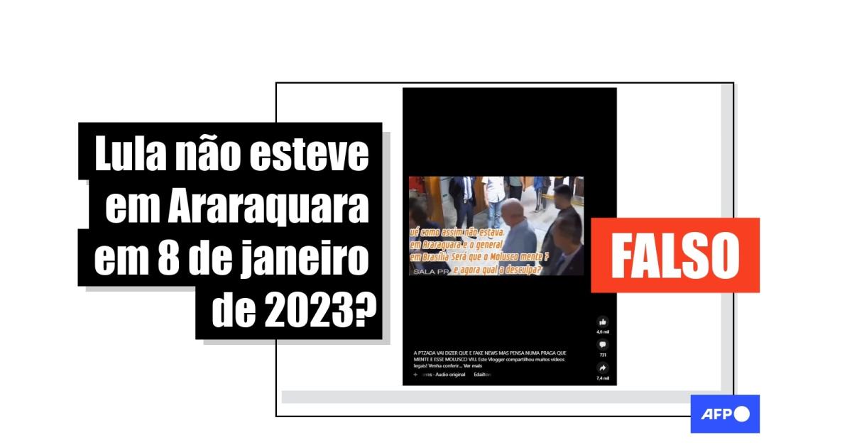 “Mentiroso. Lula fala que no dia da invasão estava em Araraquara”, diz uma das publicações compartilhadas no TikTok, no Kwai, no Facebook, no Instagram e no Twitter.