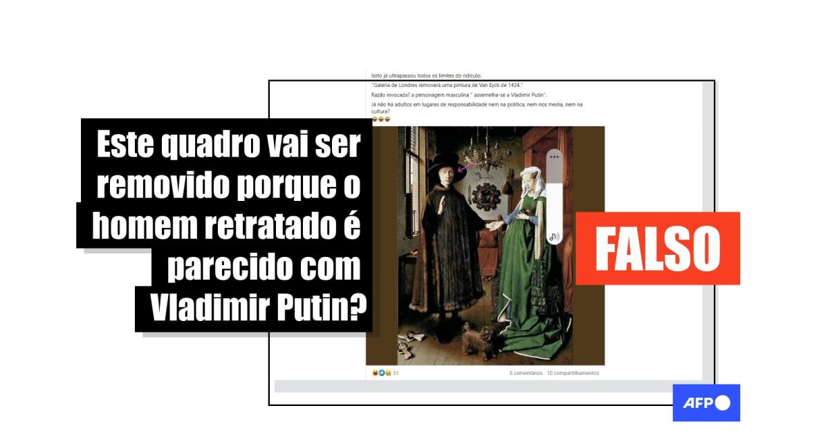 “Isto já ultrapassou todos os limites do ridículo. ‘'Galeria de Londres removerá uma pintura de Van Eyck de 1434.’ Razão invocada? a personagem masculina ‘assemelha-se a Vladimir Putin’", garante uma publicação no Facebook. O conteúdo circula também em mensagens publicadas no Twitter.