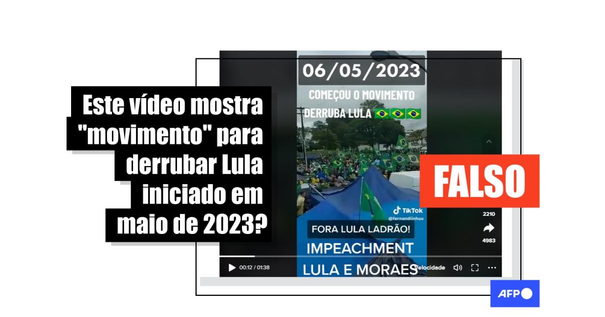“06/05/2023 começou o Movimento Derruba Lula”, diz o texto sobreposto a um vídeo compartilhado no TikTok, no Facebook e no Instagram.