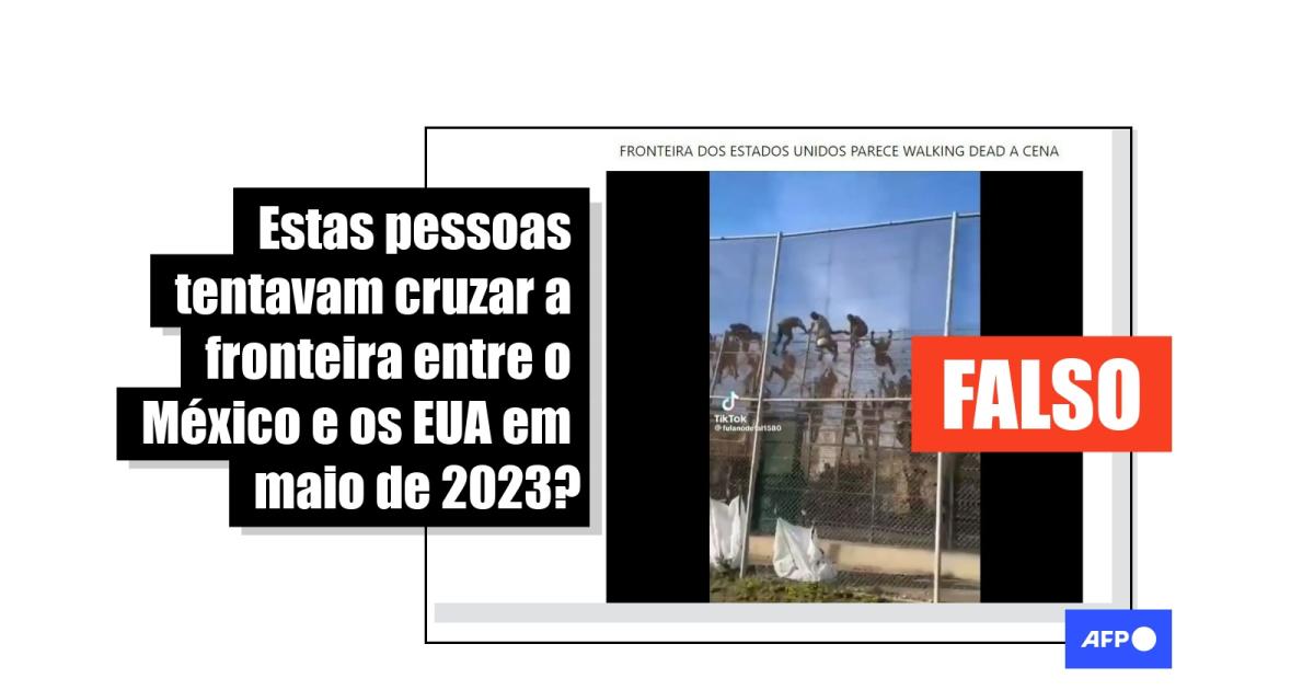 “FRONTEIRA DOS ESTADOS UNIDOS PARECE WALKING DEAD A CENA”, dizem usuários no Facebook, no TikTok e no Telegram, comentando sobre uma gravação de 12 segundos que retrata várias pessoas escalando uma cerca