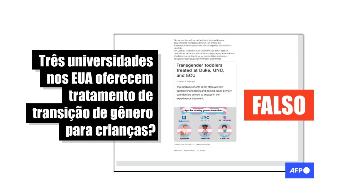 A ECU Health disse à AFP em um e-mail de 17 de maio de 2023 que “não oferece cirurgia de afirmação de gênero para menores, nem o sistema de saúde oferece cuidados de transição de gênero para crianças”.