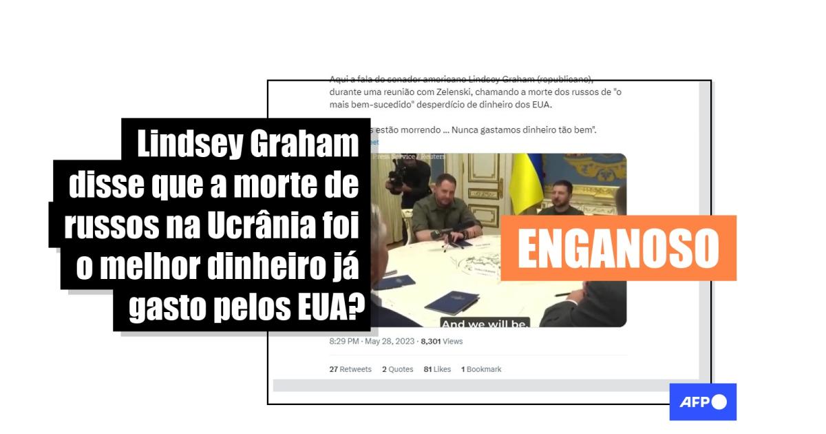 É possível ver Graham de costas dizendo “e os russos estão morrendo”. Imediatamente, em outro plano, o senador republicano aparece de frente afirmando “é o melhor dinheiro que já gastamos”. As imagens foram publicadas pelo governo ucraniano.