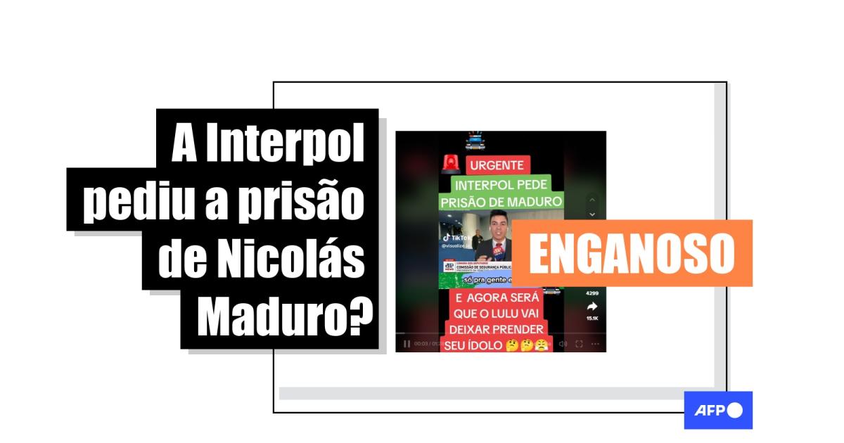 “Urgente. Interpol pede prisão de Maduro”, diz texto sobreposto a um vídeo compartilhado no Facebook, no Kwai, no TikTok e no Twitter.