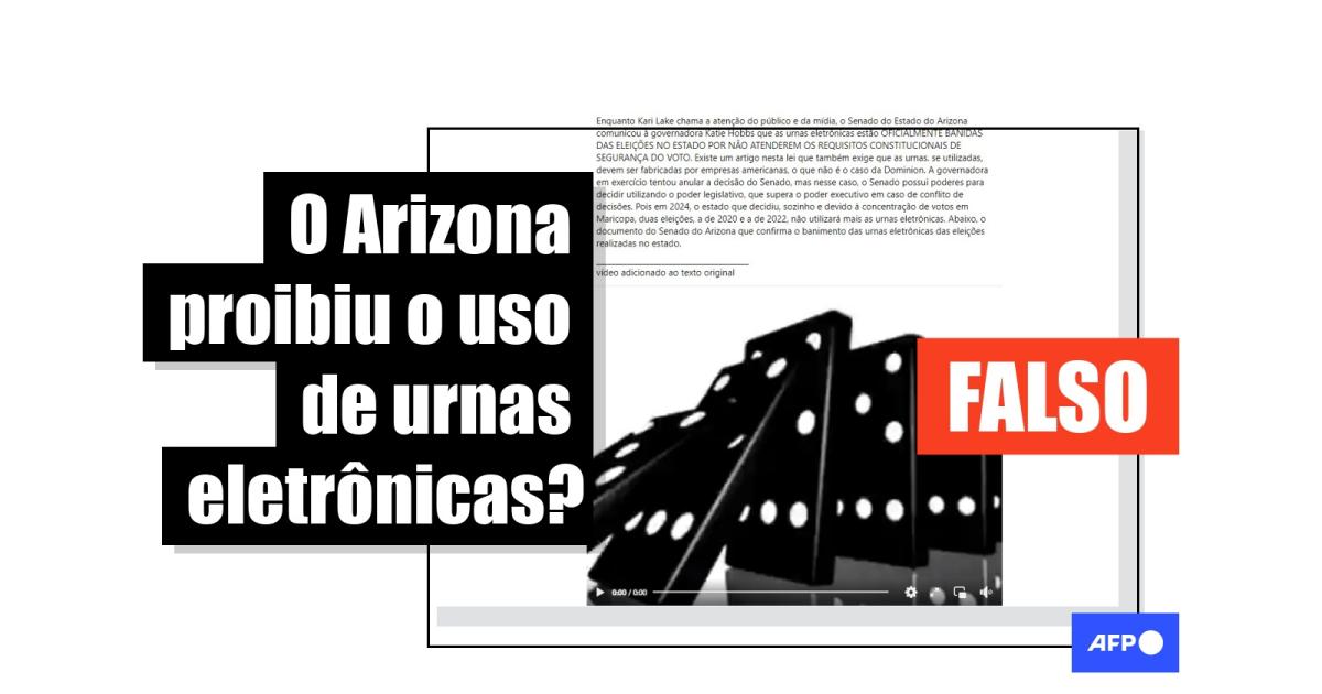 “O Senado do Estado do Arizona comunicou à governadora Katie Hobbs que as urnas eletrônicas estão OFICIALMENTE BANIDAS DAS ELEIÇÕES NO ESTADO POR NÃO ATENDEREM OS REQUISITOS CONSTITUCIONAIS DE SEGURANÇA DO VOTO”, diz um texto compartilhado no Facebook. A alegação também foi difundida no Twitter.