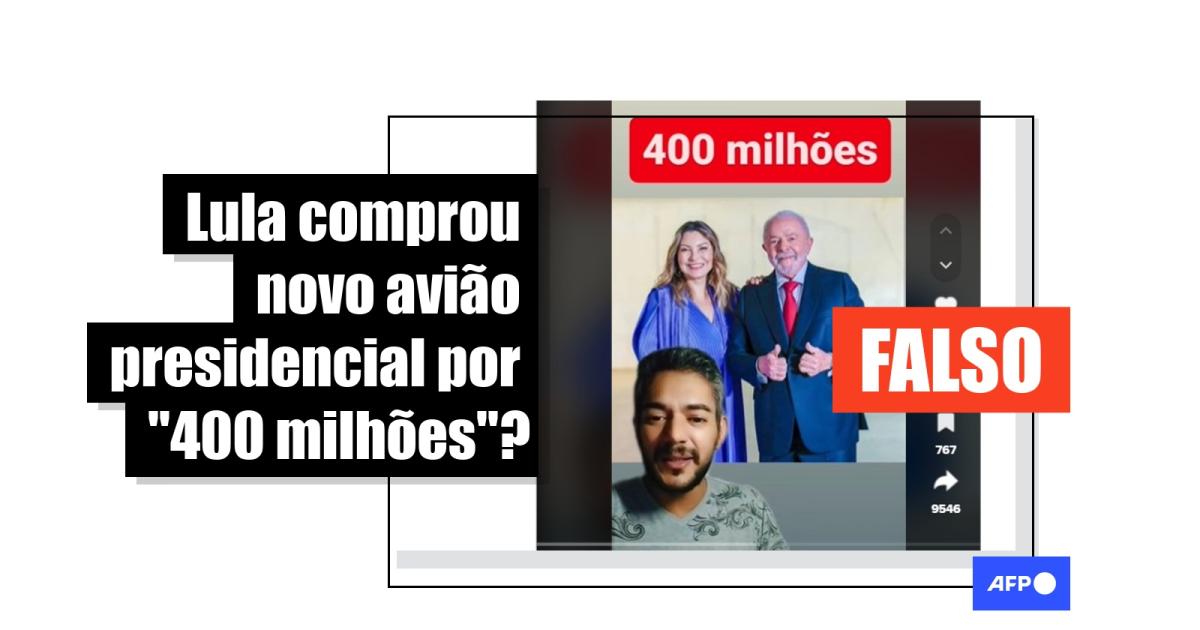 “400 milhões, 400 milhões, esse é o valor do novo avião que o Lula acabou de pagar”, diz um homem no vídeo publicado originalmente no TikTok e replicado em outras redes como Facebook e Twitter.