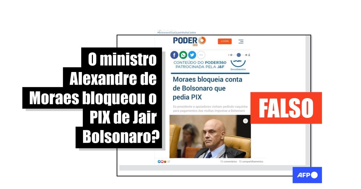 “Moraes bloqueia conta de Bolsonaro que pedia PIX”, diz a suposta manchete do veículo Poder 360, que foi compartilhada no Facebook, no Twitter, no Instagram, no TikTok e no Kwai.