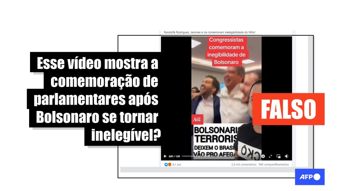 “Congressistas comemoram a inelegibilidade de Bolsonaro”, diz texto sobreposto ao vídeo compartilhado no Facebook, no TikTok e no Twitter.