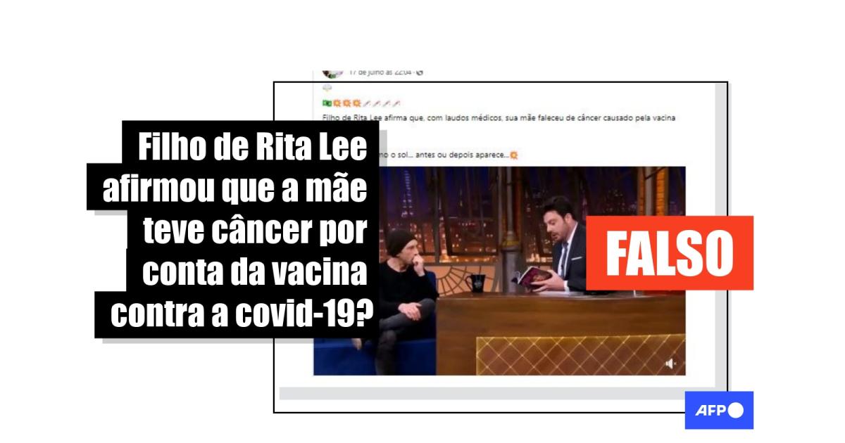 “Filho de Rita Lee afirma que, com laudos médicos, sua mãe faleceu de câncer causado pela vacina covid”, diz uma das publicações compartilhadas no Facebook, no Instagram, no Telegram, no Kwai, no TikTok e no Twitter, agora chamado X.
