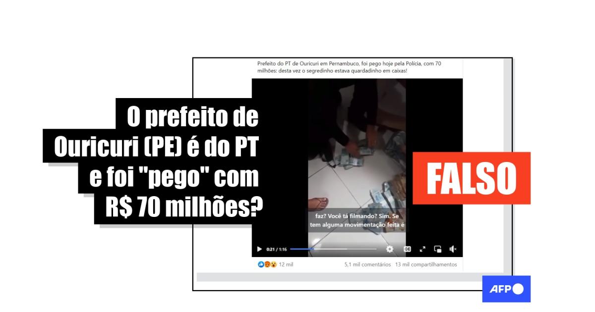 “Prefeito do PT de Ouricuri em Pernambuco, foi pego hoje pela Polícia, com 70 milhões”, diz uma das publicações compartilhadas no Facebook. O conteúdo circula também no Instagram, no TikTok, no YouTube, no Kwai e no Twitter, agora chamado X.