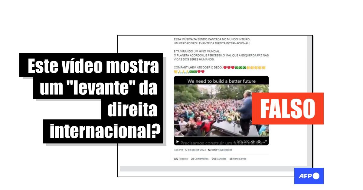 “ESSA MÚSICA TÁ SENDO CANTADA NO MUNDO INTEIRO.UM VERDADEIRO LEVANTE DA DIREITA INTERNACIONAL! (...) O PLANETA ACORDOU,E PERECEU O MAL QUE A ESQUERDA FAZ NAS VIDAS DOS SERES HUMANOS”, diz uma das publicações compartilhadas no Facebook, no Instagram, no TikTok, no Kwai e no X (antes Twitter).