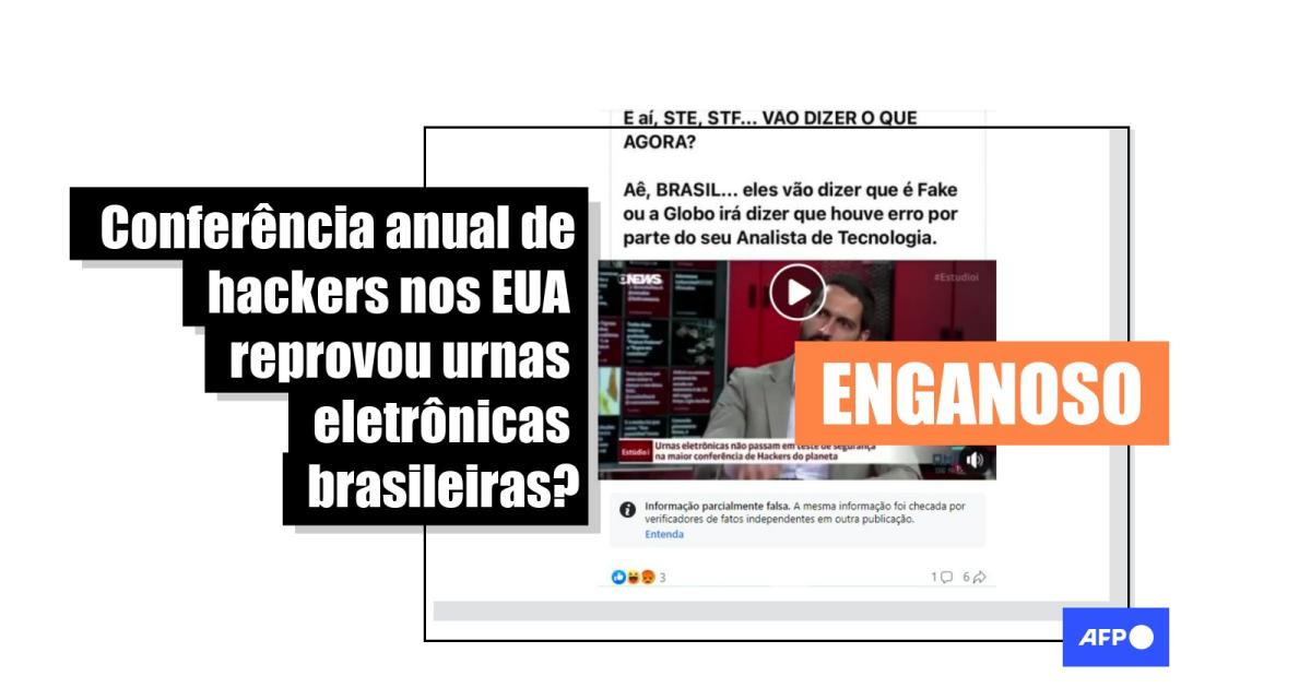 As publicações, que já circularam em 2018, 2020, 2021 e 2022, apresentam como se fosse atual o trecho de uma reportagem do programa Estúdio I, da GloboNews, sobre testes performados com urnas eletrônicas em um congresso de hackers nos Estados Unidos, conhecido como DefCon.