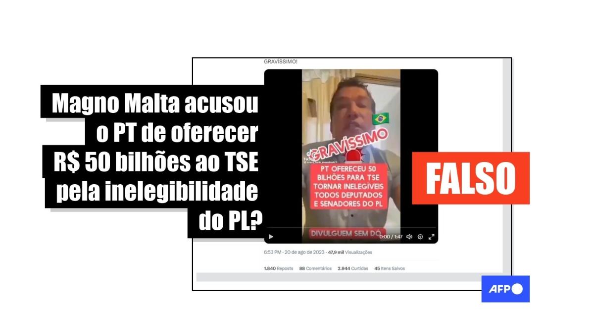 Procurada pelo AFP Checamos, a assessoria de imprensa de Malta confirmou que “as afirmações sobre o ‘PT ter oferecido 50 bilhões ao TSE para tornar inelegíveis todos os deputados e senadores do PL’ são falsas”.