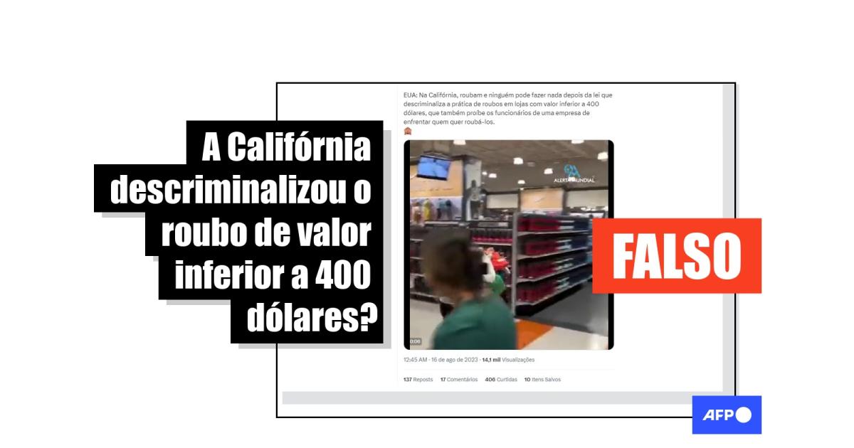 Robert Weisberg, co-diretor do Centro de Justiça Criminal da Universidade de Stanford, disse à AFP que "o roubo [de menos de US$ 400] não foi descriminalizado" na Califórnia. “Simplesmente não é um delito grave sob a lei americana, é um delito menor”, acrescentou ele em um telefonema em 16 de agosto de 2023.