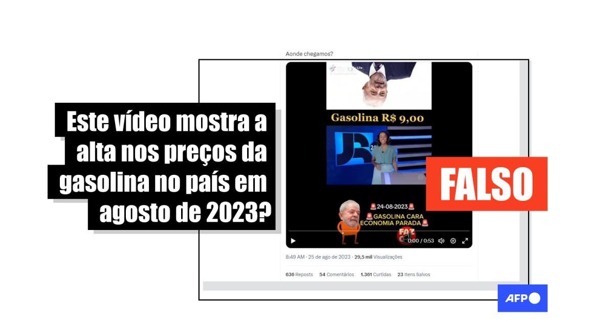 Sobreposto ao vídeo, um texto indica que a reportagem seria de 24 de agosto de 2023. As publicações também são acompanhadas por duas imagens do presidente Luiz Inácio Lula da Silva (PT), reforçando a alegação de que o preço teria sido registrado durante o seu mandato. Mas isso não é verdade.
