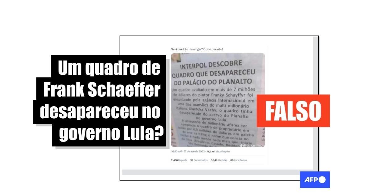 Alegação falsa sobre desaparecimento de quadro de Frank Schaeffer no governo Lula volta a circular