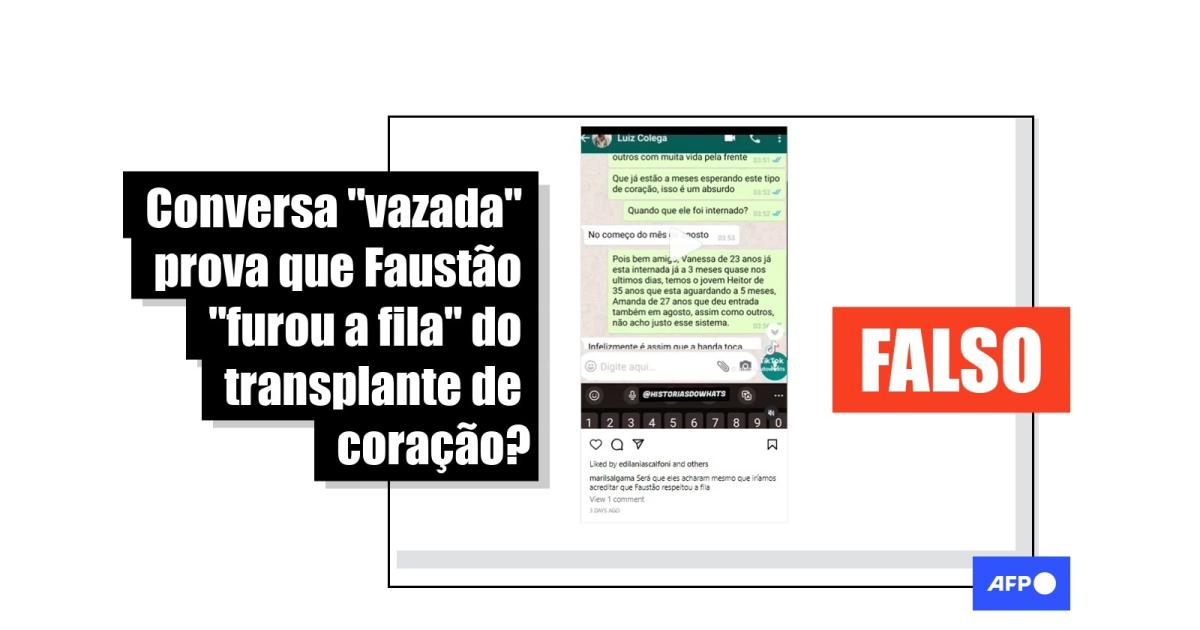 No entanto, a alegação de que essa seria uma conversa vazada sobre irregularidades na organização da fila de transplantes no Brasil é falsa.