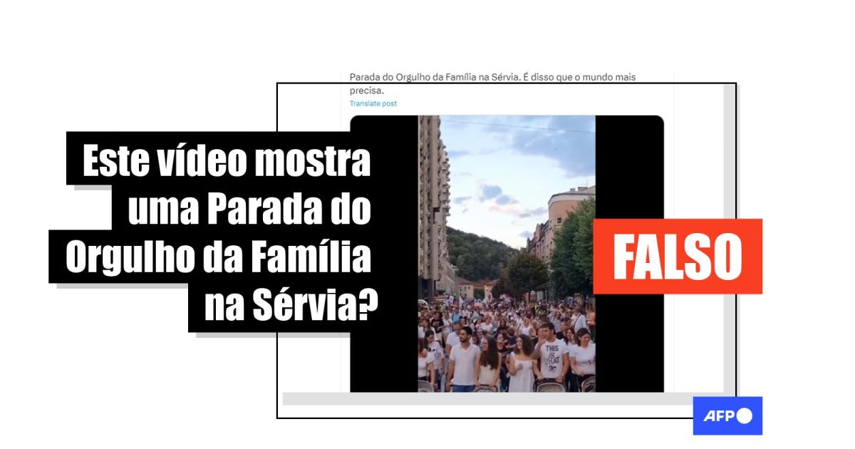 Mas a sequência não corresponde a uma Parada do Orgulho da Família que teria acontecido em setembro de 2023, na Sérvia, como alegam as publicações visualizadas mais de 110 mil vezes nas redes sociais.