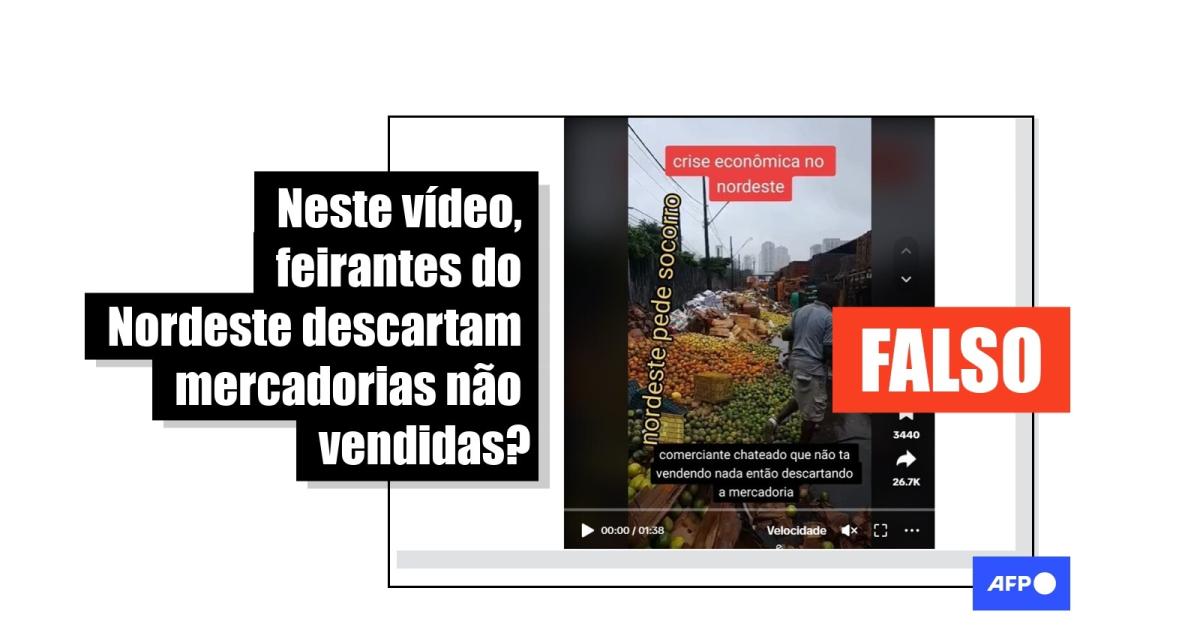 “Crise econômica no nordeste. Comerciante chateado que não ta vendendo nada então descartando a mercadoria”, diz o texto sobreposto a um vídeo que circula no Instagram, no Facebook, no Kwai e no TikTok, e que mostra vários alimentos sendo jogados fora.