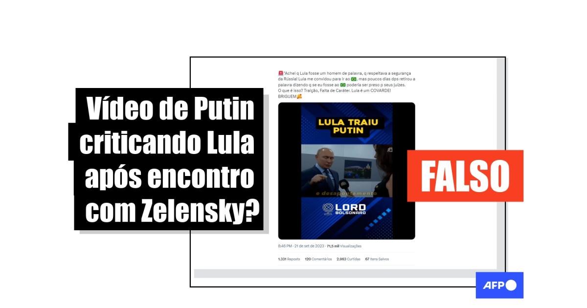 Nas imagens Putin aparece gesticulando, mas não é possível ouvir o que ele diz. Segundo o narrador, ele teria expressado “surpresa e desapontamento” por Lula ter se encontrado com o ucraniano, mas não ter visitado a Rússia: “Achei que Lula fosse um homem de palavra.”