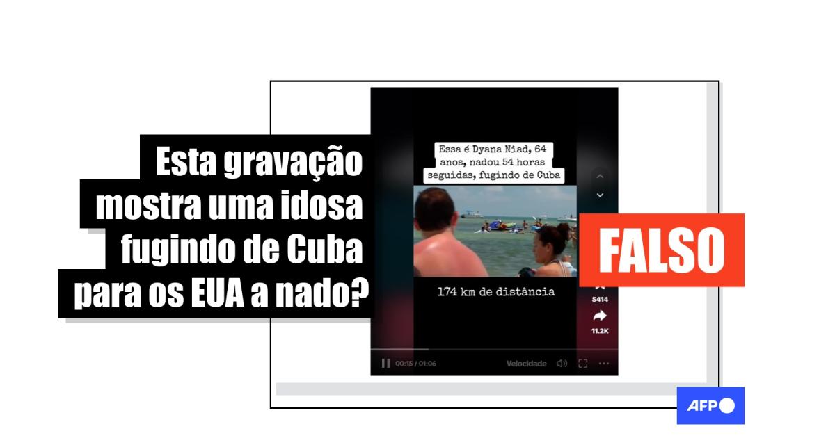 Na sequência, é possível ver uma mulher nadando no mar cercada por dois barcos a remo. “Essa é Dyana Niad, 64 anos, nadou 54 horas seguidas, fugindo de Cuba”, afirma o texto em seguida.