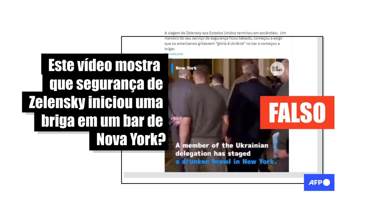 Um porta-voz do vice-comissário de Informação Pública da polícia de Nova York disse à AFP em 27 de setembro de 2023 que “não há nenhum informe policial” sobre um incidente que envolva um dos seguranças de Zelensky.