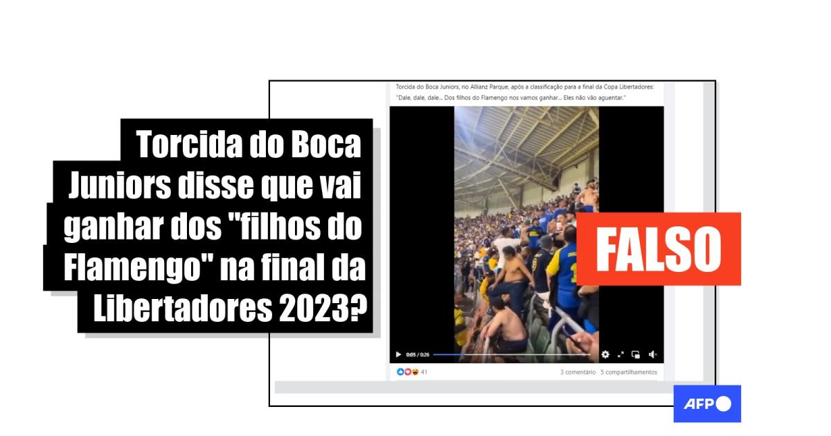 Jornalistas do serviço de checagem em espanhol da AFP detalharam que o canto da torcida do Boca Juniors não faz referência ao Fla, mas sim: “En Rio de Janeiro, vamos a ganar. En Rio de Janeiro, vamos a ganar. Y la vuelta, y la vuelta vamos a dar”.