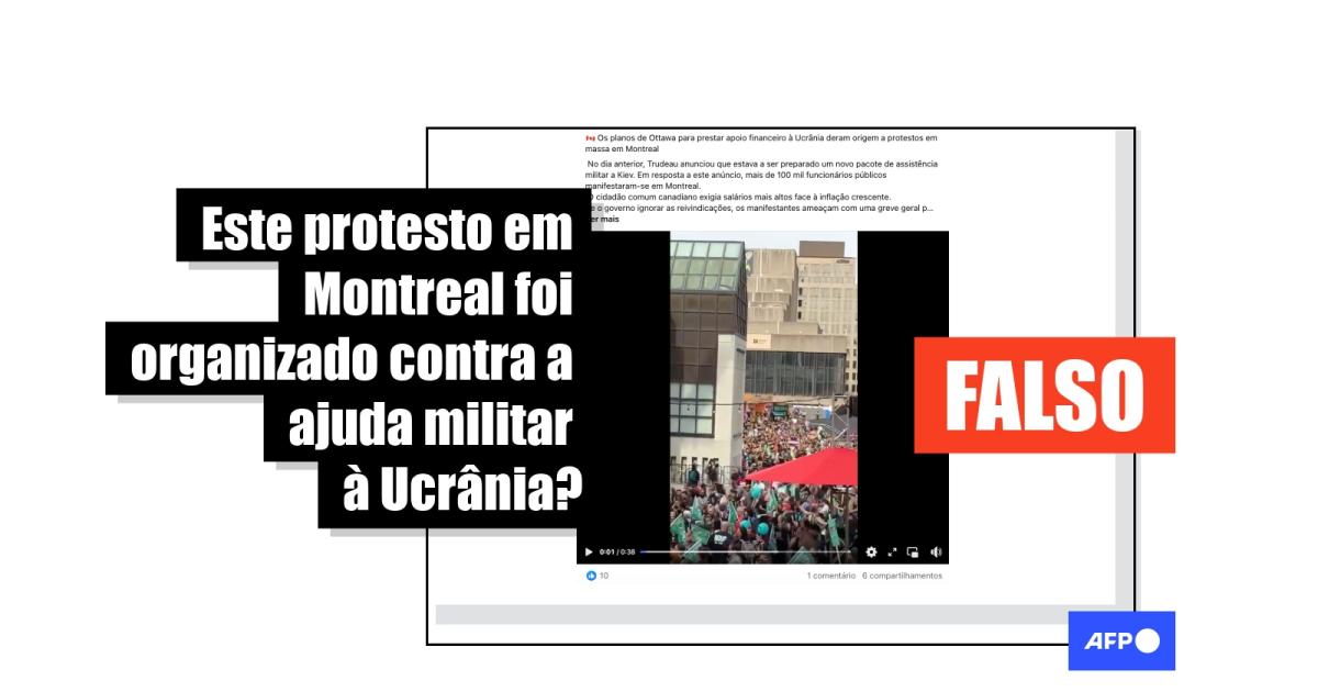 “Os planos de Ottawa para prestar apoio financeiro à Ucrânia deram origem a protestos em massa em Montreal”, diz a legenda de publicações no Facebook, no Telegram e no X (antes Twitter).
