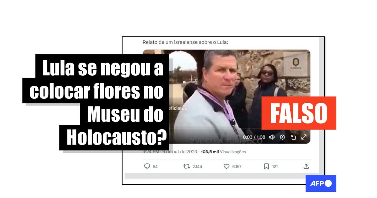 Na sequência é possível ver um homem que diz, em português, que quando Lula fez uma visita oficial a Israel e foi levado ao Museu do Holocausto, ele teria se recusado a colocar flores, gesto tradicionalmente feito por chefes de Estado no local.
