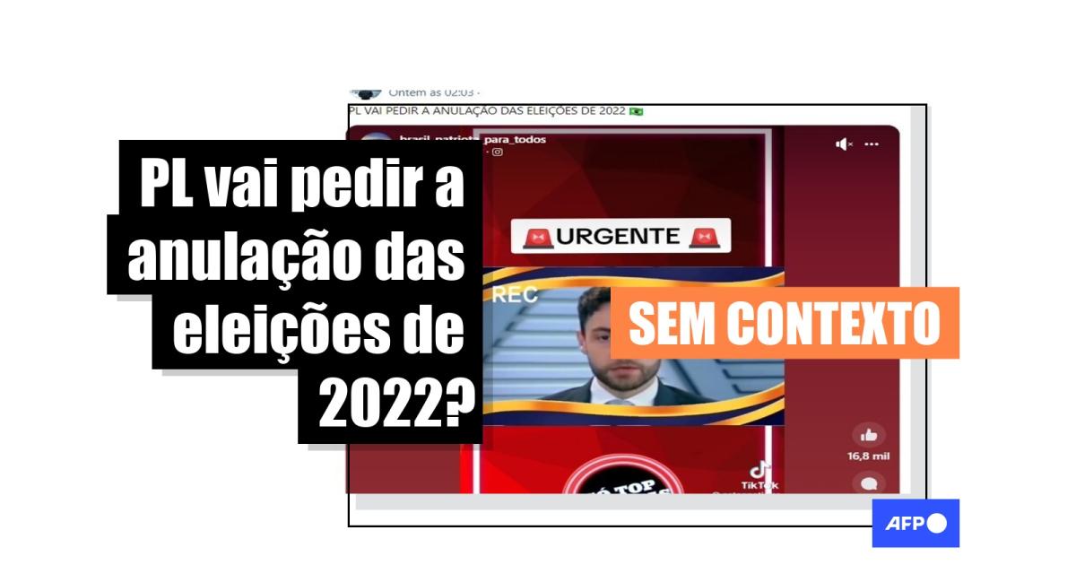 “O PL vai pedir a anulação das eleições de 2022”, diz a legenda de uma das publicações que compartilham a reportagem no TikTok, no Instagram e no Facebook.