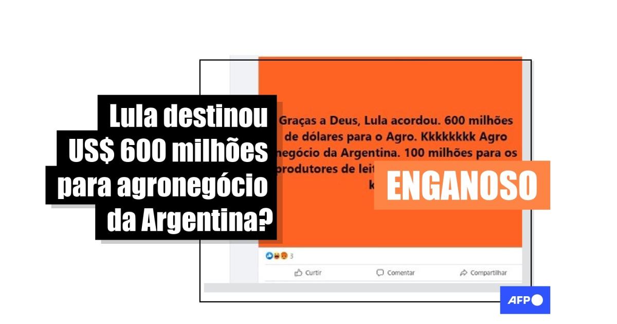 “Graças a Deus, Lula acordou. 600 milhões de dólares para o agro. kkkkkkk Agro negócio da Argentina. 100 milhões para os produtores de leite. Pra nós comprar de lá. kkkkk”, afirma uma das postagens no Facebook. A alegação também circula no TikTok e no Instagram junto ao vídeo do deputado.