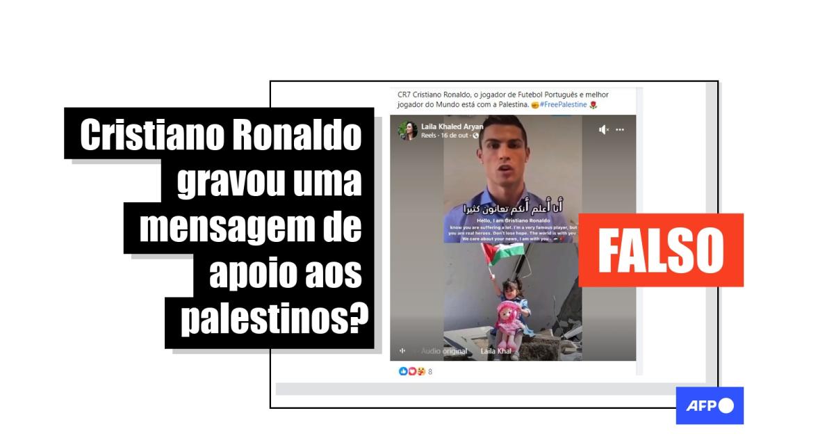 “CR7 Cristiano Ronaldo, o jogador de Futebol Português e melhor jogador do Mundo está com a Palestina. #FreePalestine”, diz uma das publicações que compartilham a sequência no Facebook e no X (antes Twitter).