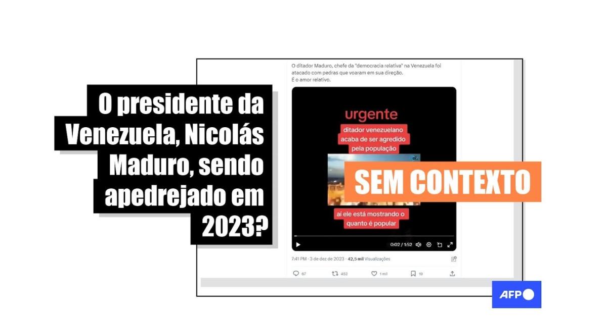 “O ditador Maduro, chefe da 'democracia relativa' na Venezuela foi atacado com pedras que voaram em sua direção. É o amor relativo”, diz uma das publicações que circulam no X (antes Twitter), no Instagram, no TikTok e no Facebook.