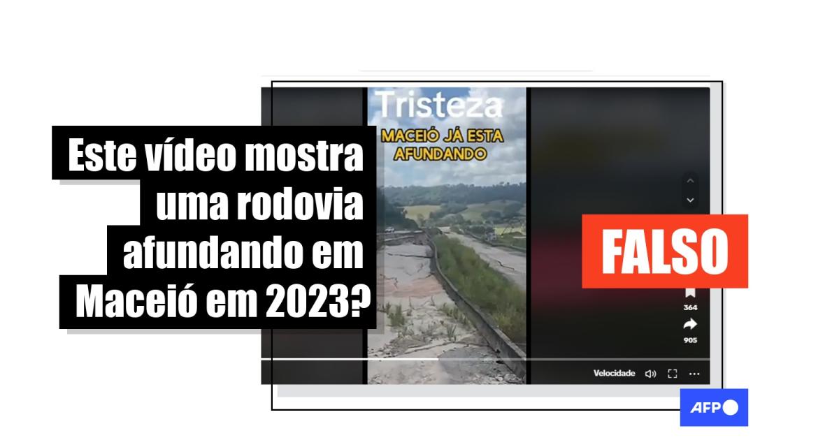 O vídeo viral mostra uma rodovia com a pavimentação danificada. Um homem narra as imagens e diz que enquanto reportagens noticiam o risco de que bairros afundem em Maceió, esquecem que, ali, “já afundou há muito tempo”. Ele classifica o cenário que exibe como “cenas de terror” e diz que o local é na BR-101. Nos comentários, internautas demonstram acreditar se tratar de um afundamento atual em Maceió.